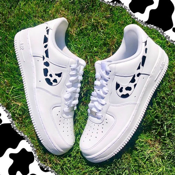 Cow Print Swoosh Custom Made Air Force 1 Personalized White Etsy
